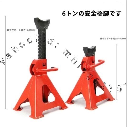- 6トン耐荷重 強化型安全ジャッキスタンド 重機用アジャスタブルスタンド 自動車整備工具 メカニックサポートレッド