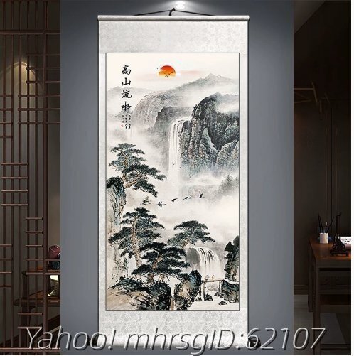 - 山水画応接間掛画高山流水玄関装飾画事務室背景壁縦版巻物画