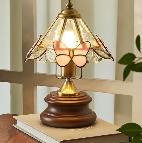 - 中古全スペクトル寝室の雰囲気のランプベッドサイドのランプアメリカのレトロなガラスのレトロな蝶の電気スタンドです