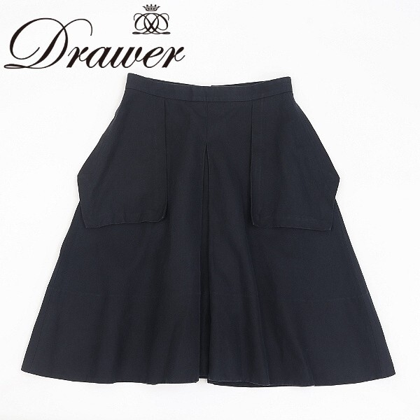 > 【HA911】◆Drawer ドゥロワー リネン&コットン タック フレア スカート 黒 ブラック 38