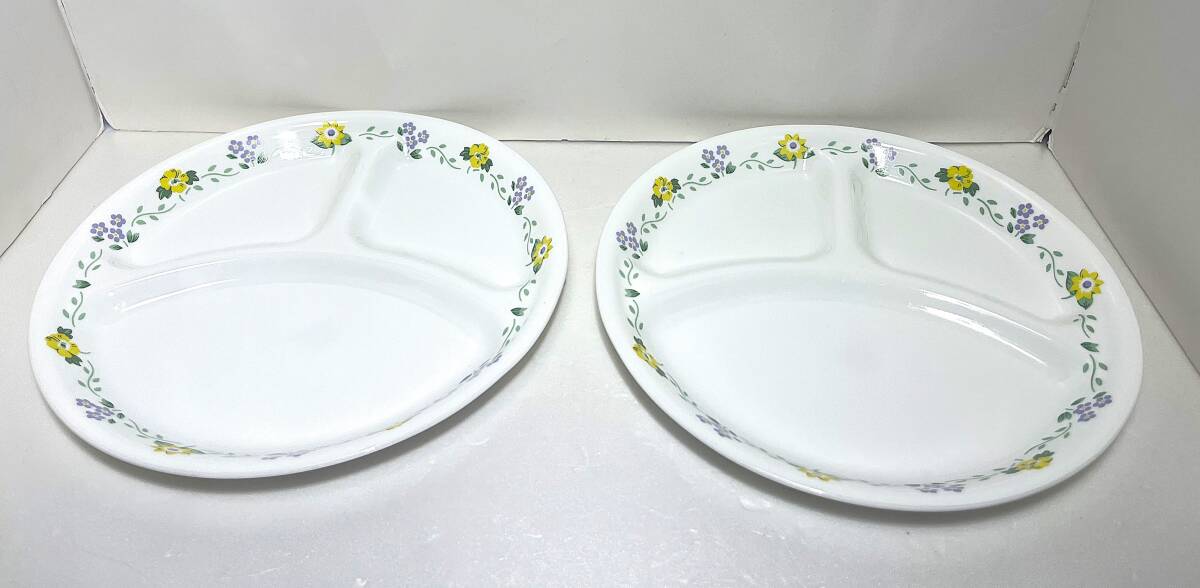 - ◆◇ R951) 美品 CORELLE 仕切り皿 花柄 2枚セット ◇◆