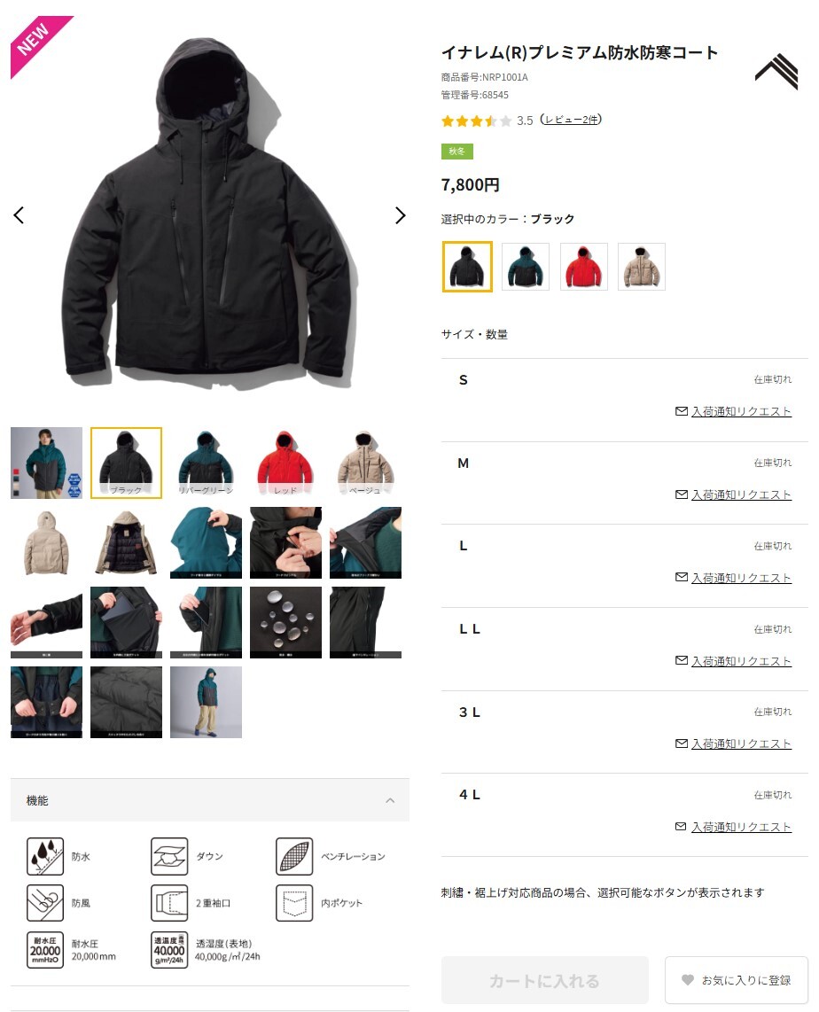 > ★ ワークマン イナレム(R)プレミアム防水防寒コート NRP1001A 黒・Lサイズ 【新品】2025年冬 送料込み ★