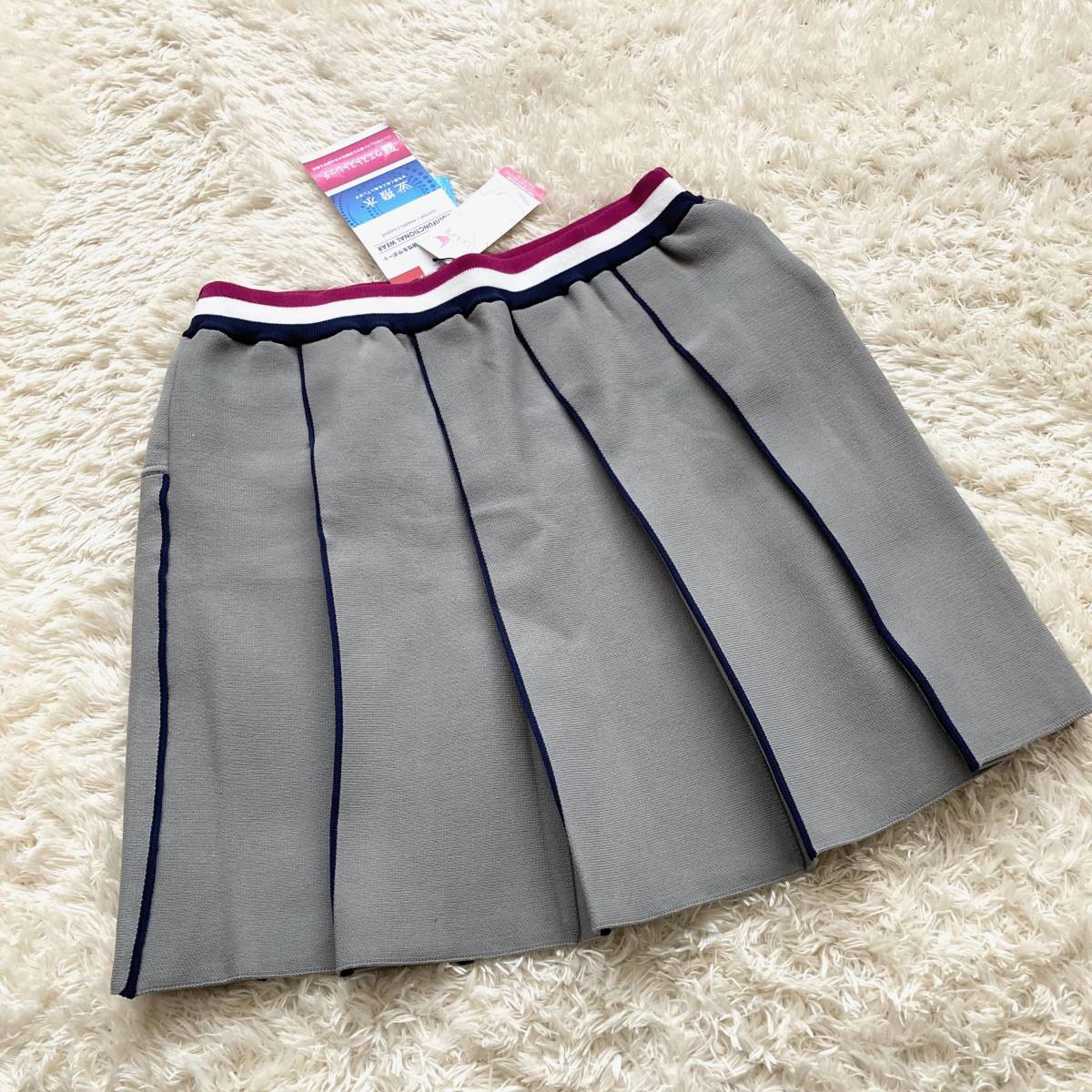 - 新品 未使用 CLUNK クランク ストレッチ ニット プリーツ スカート Mサイズ グレー ネイビー 紺 秋冬 冬物 ゴルフ レディース