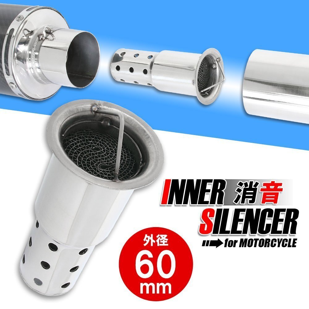 - インナーサイレンサー 60mm 消音 触媒型 ステンレス バッフル 差込用 汎用 Aタイプ バイク オートバイ マフラー カスタム パーツ 交換 補修