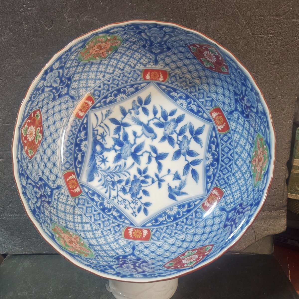 - 美濃焼 庫山窯 染錦 花鳥 大鉢 輪花鉢 盛り鉢 菓子鉢 大皿 和食器