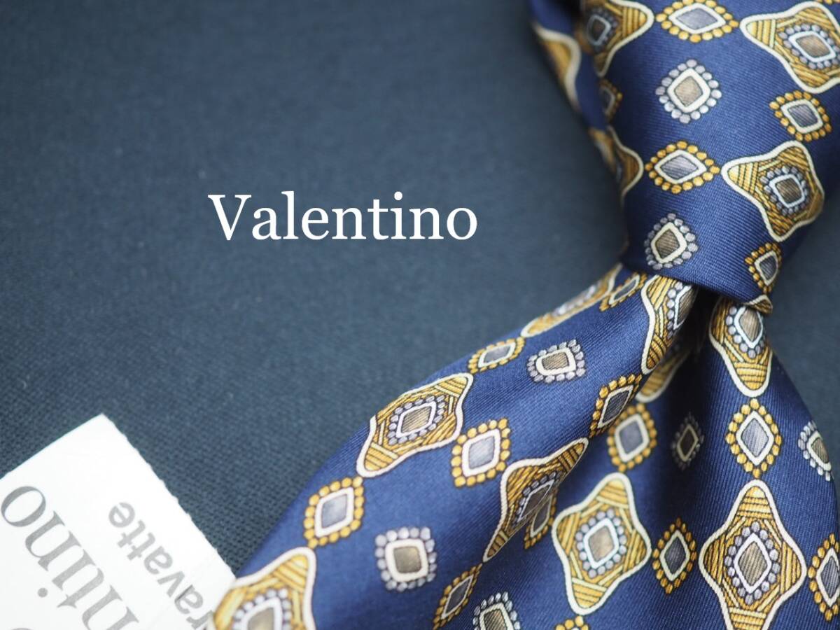 > 未使用品【VALENTINO ヴァレンティノ】 G1126 ネイビー系 SILK ブランド ネクタイ 古着 良品 転売 仕入