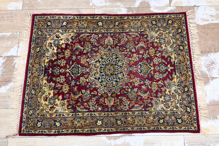 - CH04 シルク/ウール 手織り イラン製 ハンドメイド ペルシャ絨毯 玄関マット キッチンマット ラグ
