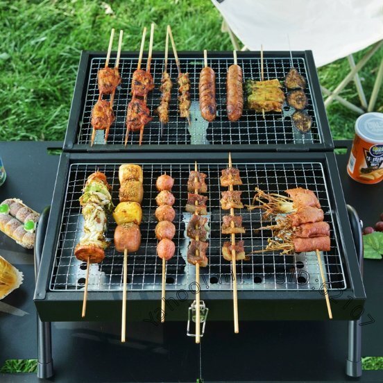 - 屋外用煙突付きバーベキューコンロ 両面焼き可能な手提げ式炭火焼き炉 コンパクトなアウトドア焼肉