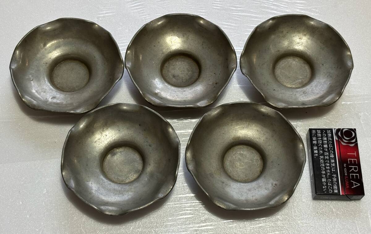 - 茶道具 その1 茶托 五客 検:骨董 アンティーク 旧家蔵出し 中国 唐物 古美術 錫製