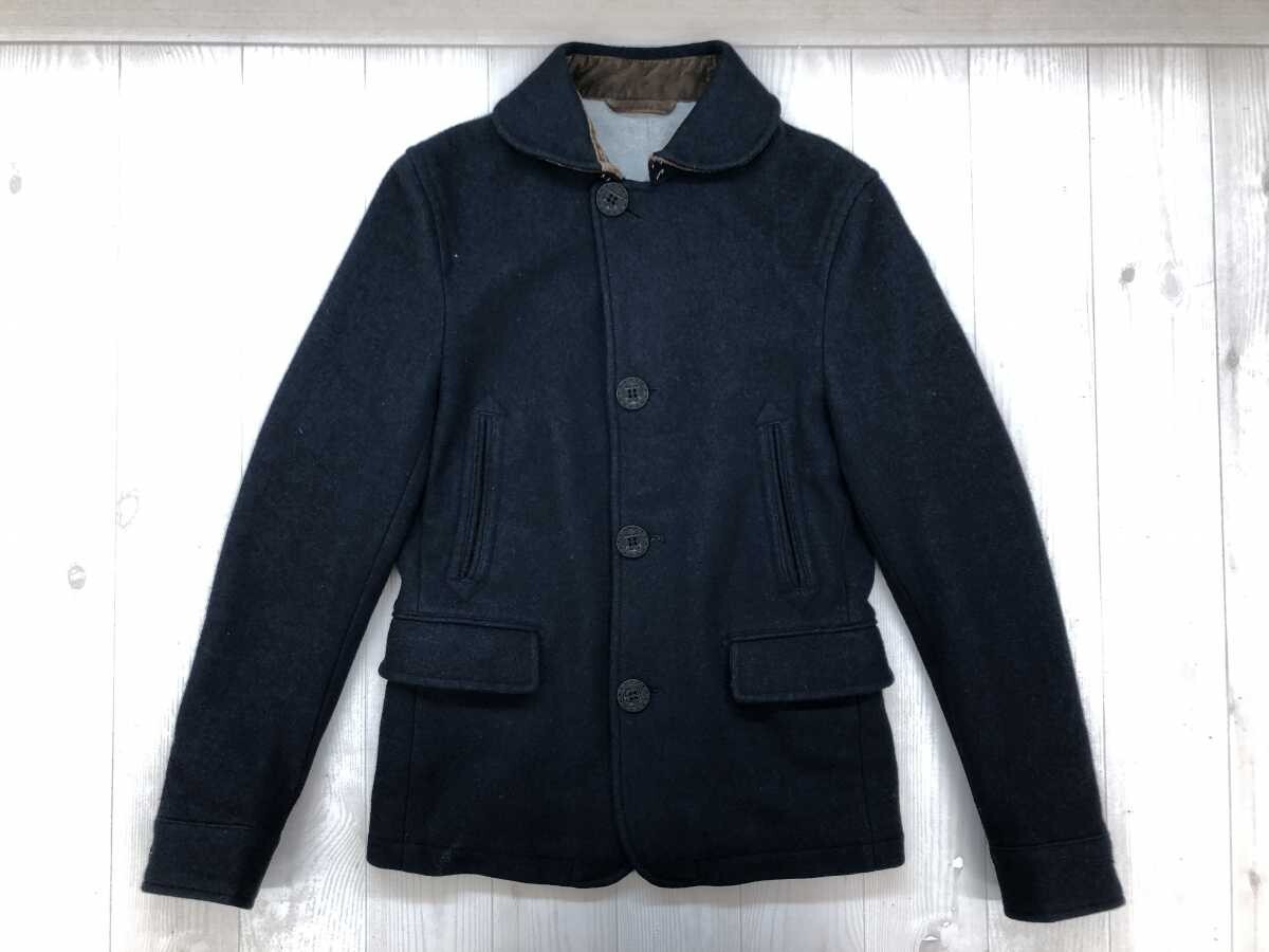 > シップス SHIPS レトロ 00s アメカジ ワーク マリン ラウンドカラー イカリボタン メルトン ジャケット メンズ ニット裏地有り 紺