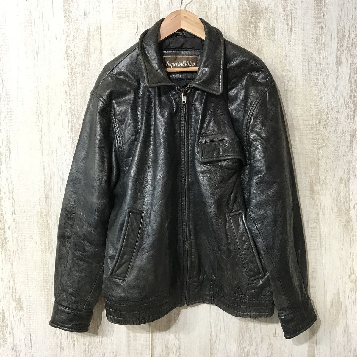 > 257☆【ヴィンテージ 古着 牛革 カウレザージャケット】ImperialVilla 革ジャン L 黒