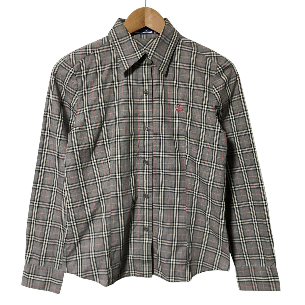 - BURBERRY BLUE LABEL バーバリーブルーレーベル チェック シャツ 長袖 ホース刺繍 40 グレー ピンク レディース A1