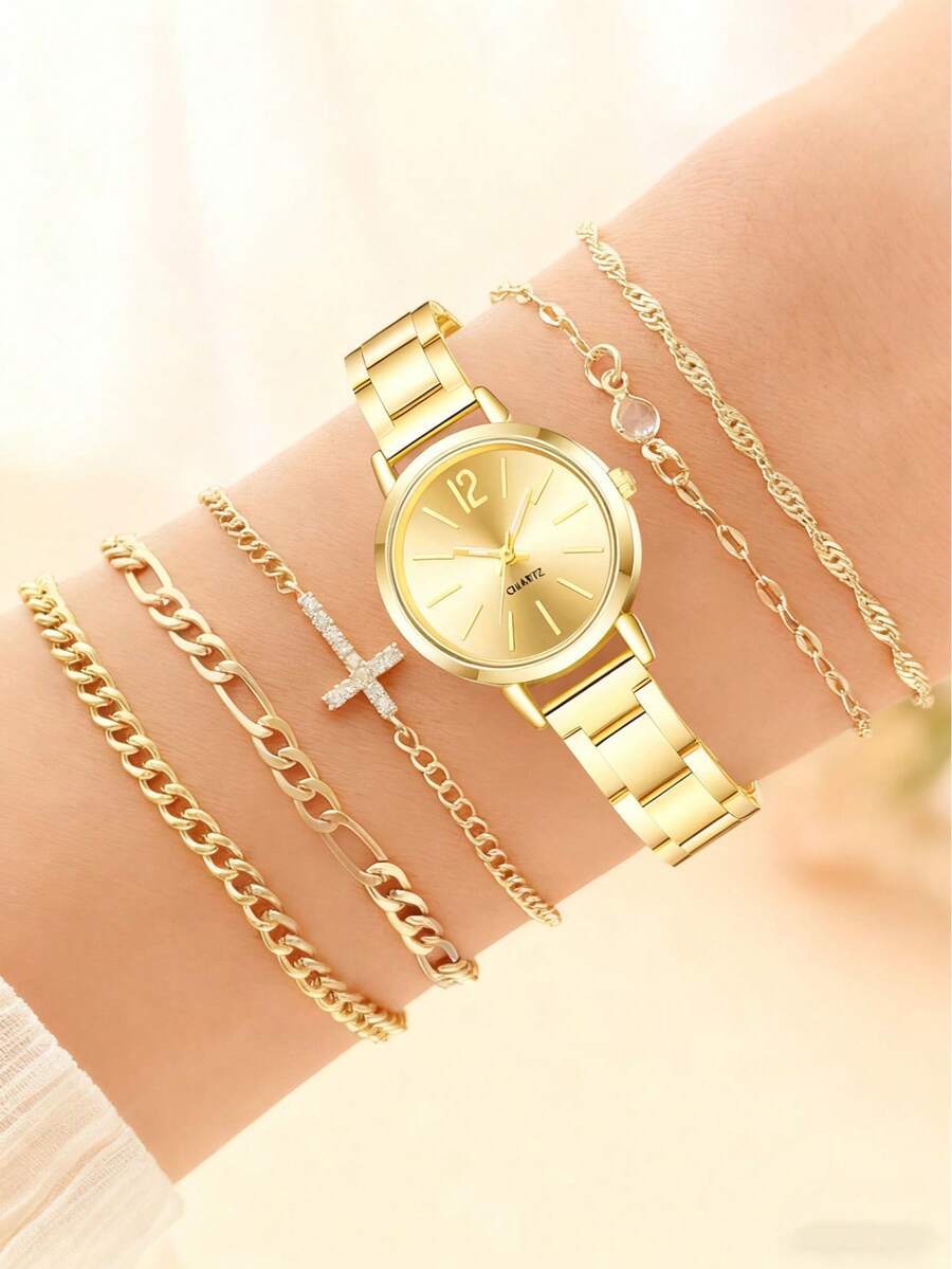 > 腕時計 レディース セット 6個セット、レディース腕時計、スタイリッシュ、シンプルでラグジュアリーな丸型ダイヤル、クォーツ腕時計ブ