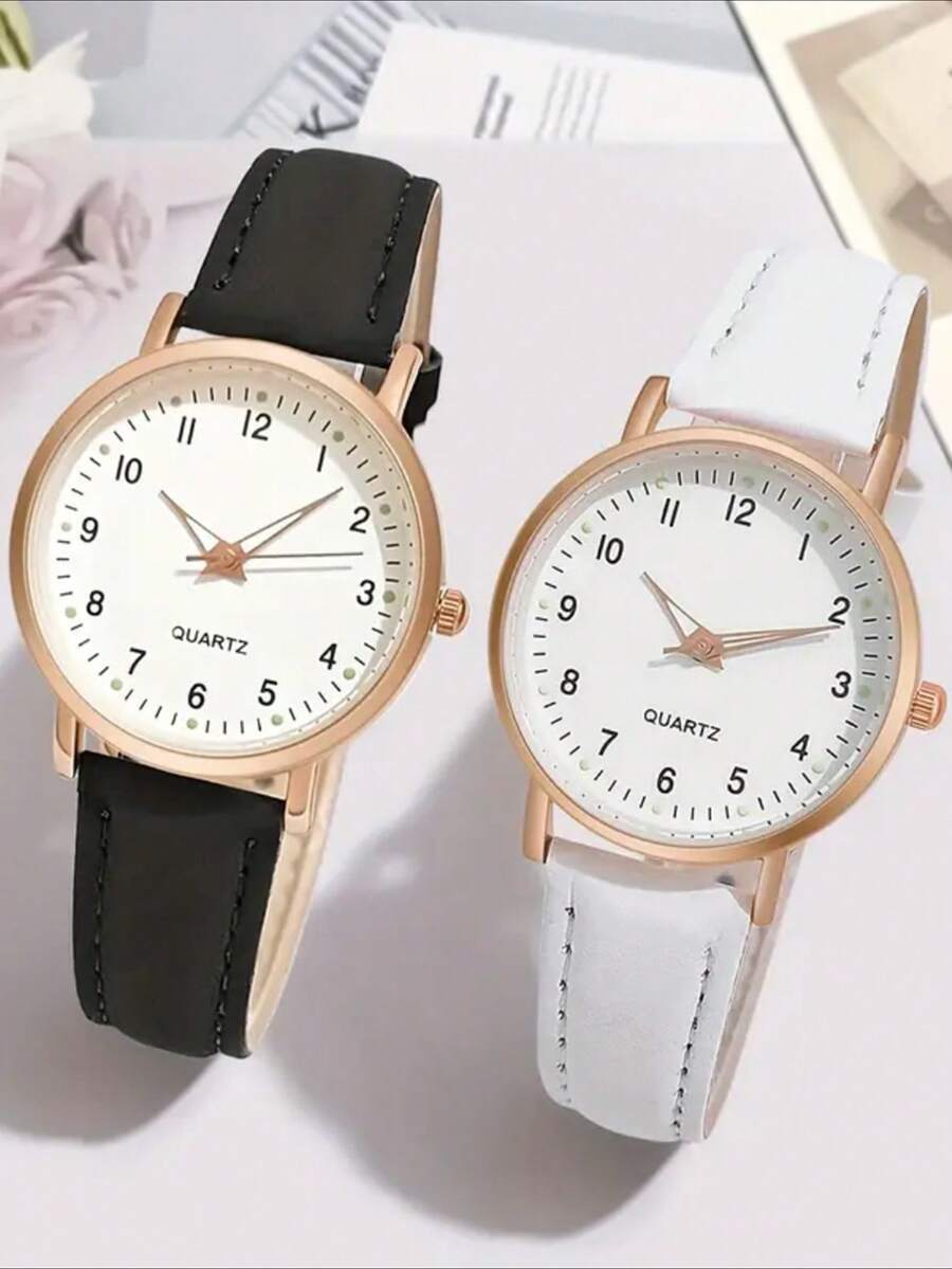- 腕時計 レディース セット 2個 カジュアルでシンプルな女性用腕時計、女性用クォーツ腕時計、アラビア数字マーカー付きラウンドダイヤ