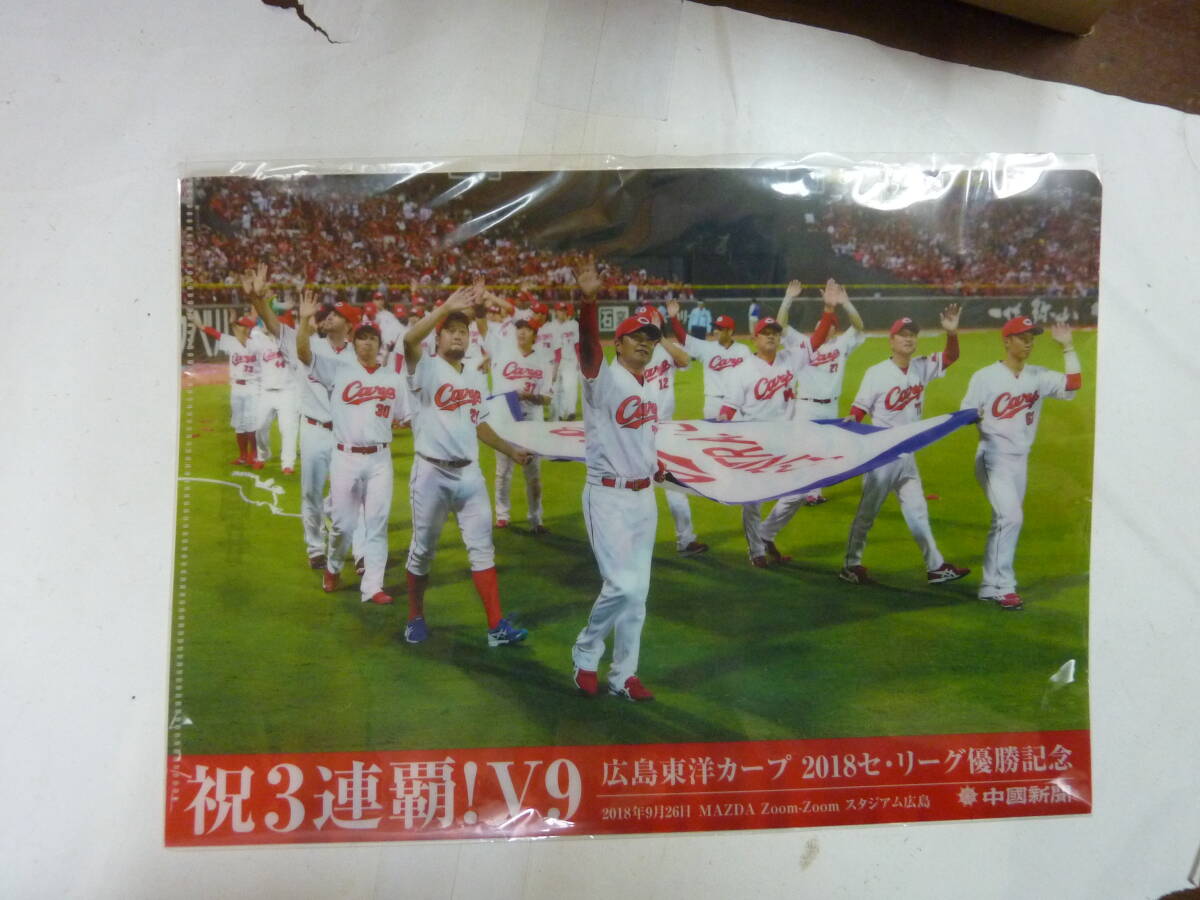 > [ 広島カープ (広島東洋カープ) / V9 2018年 セ・リーグ優勝 祝3連覇 ]未使用 ファイルケース 中国新聞 A4サイズ 送料無料