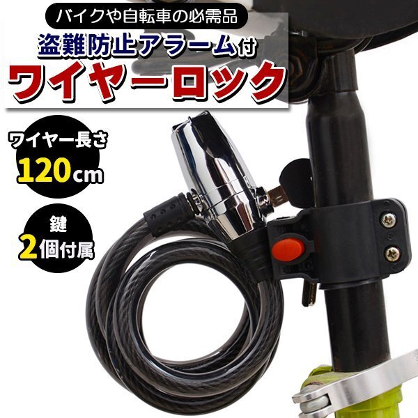 - 極太 ワイヤー キー ロック センサーアラーム 警報付き 鍵 施錠 自転車 バイク 防犯 ワイヤーロック 120cm 盗難対策 爆音 大音量 オートバ