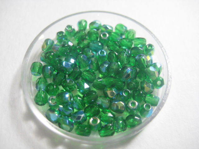 - チェコFP☆ペリドットオーロラ☆3mm☆100個☆追加可能