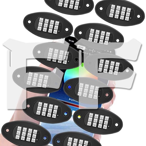 - 多彩 RGB LED アンダーライト ブレーキライト 音楽同期 APP Bluetoothコントロール ボタンスイッチ 車シャーシ装飾 12個タイプ
