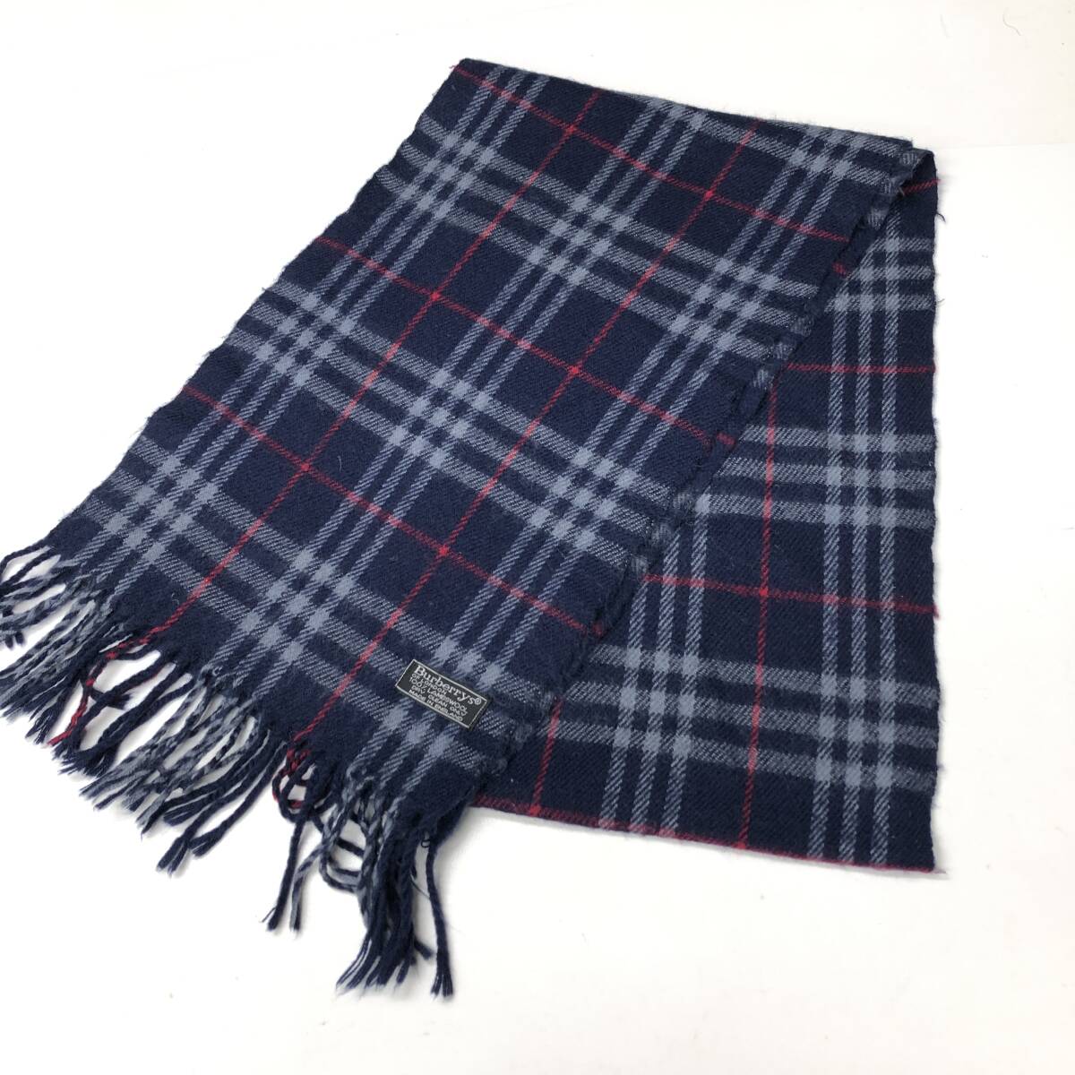 - イングランド製 Burberrys of LONDON ウールマフラー バーバリーズ 紺 ノバチェック