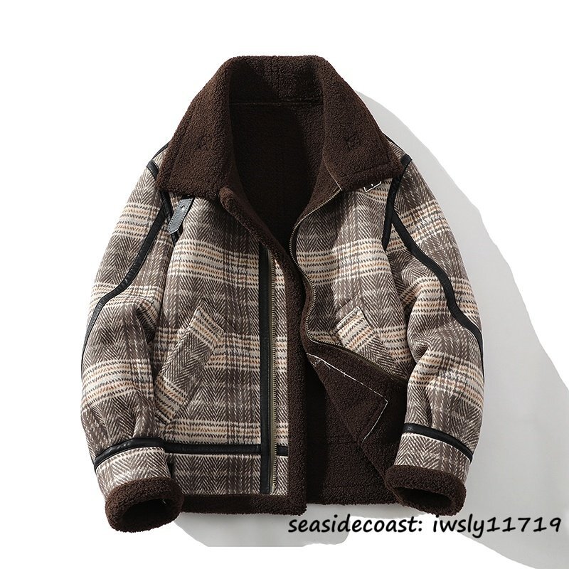 > 超希少◆ムートンコート 冬新品 フライトジャケット 暖かい 厚手 防寒 ブルゾン ファーコート アウター ジャンバー ライダース 珈琲色 4XL