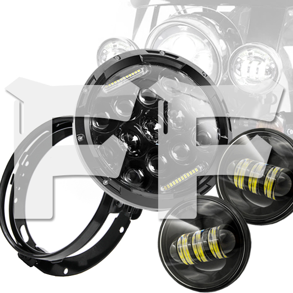 - 送料無料.. ハーレー CREEチップ LED 75W 7インチ ヘッドライト 4.5インチ フォグランプ オートバイ HLKIT-B-A ブラケット 新品