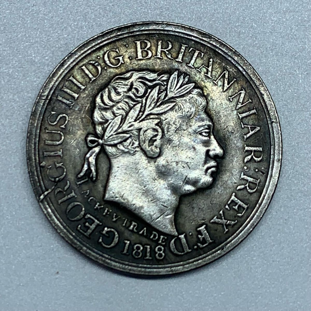 - 銀貨 1818年 イギリス 古銭 ジョージ王子3世 竜退治 大型銀貨 記念硬貨 貿易銀 アンティークコイン w22
