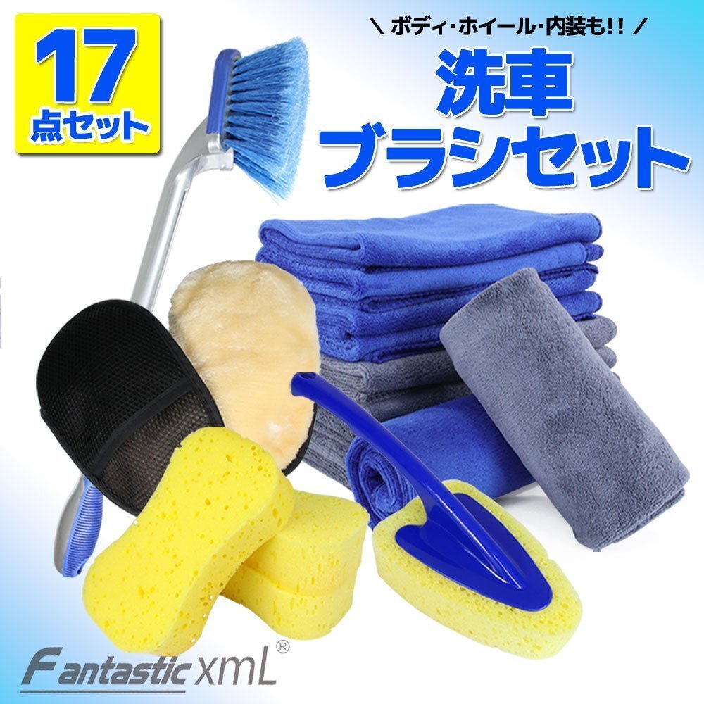 洗車ブラシ 17点セット スポンジ ホイール タイヤブラシ 柄付き グローブ ウォッシュミット マイクロファイバークロス 洗車用品 掃除 便利