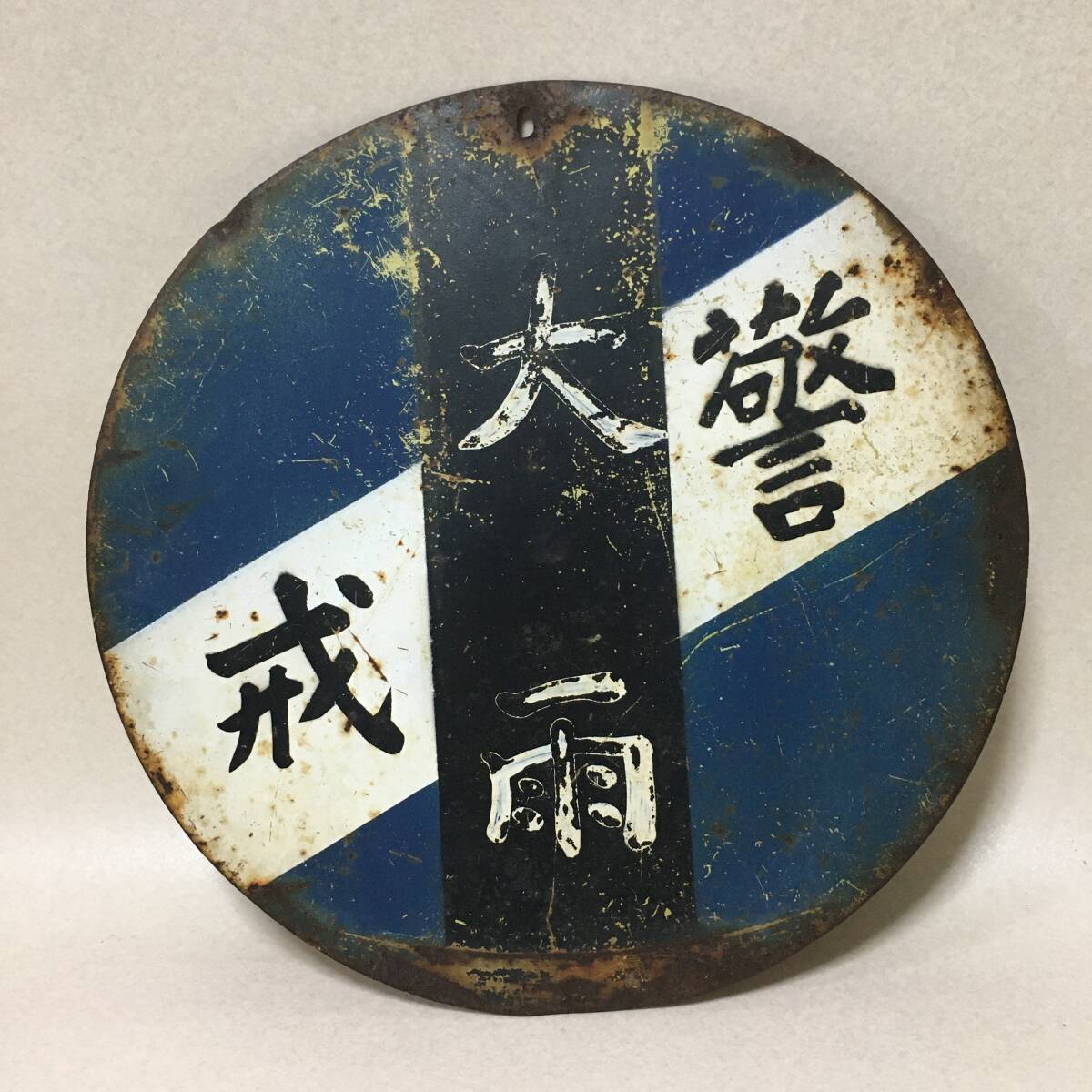 - E928 鉄道放出品 構内案内板 警戒板 大雨 強風 国鉄 鉄道グッズ ホーロー