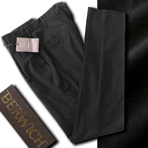 - 新品 3.9万 ベルウィッチ イタリア製 ストレッチ ツイル チノ スラックス 52(XXL) 黒 【P26811】 BERWICH パンツ トラウザーズ 製品加工