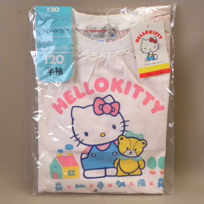 > 【未使用 新品】1980年代 当時物 サンリオ ハローキティ 子供服 半袖 夏用パジャマ 120cm ( 昔の ビンテージ 昭和レトロ Vintage Sanrio )