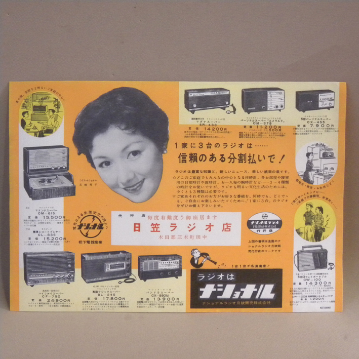 - 1950年代 当時物 松下電器 ナショナル ラジオ チラシ 高峰秀子 e ( 古い 昔の ビンテージ 昭和レトロ 昭和家電 広告 宣伝 宣材 )