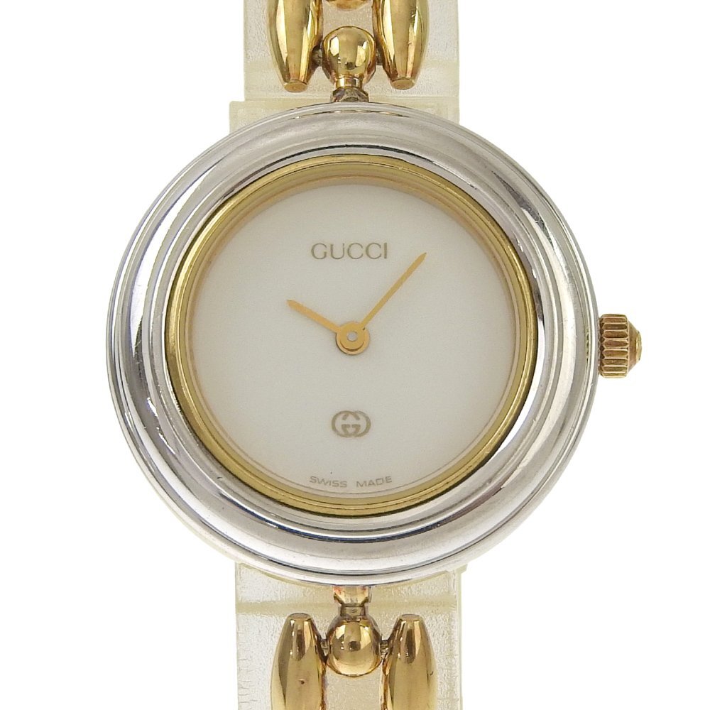 - ■ 1円 ~ 中古品 ■ グッチ GUCCI ■ チェンジベゼル 1100L レディース 腕時計 ■ ホワイト ゴールド 白 金 ビンテージ クォーツ