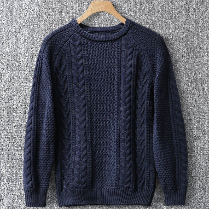 - 新品 DCKMANY ウール混 リブニット ケーブル ローゲージニット セーター クルーネック メンズ 秋冬 暖かい プルオーバー 紺 T7105-2XL