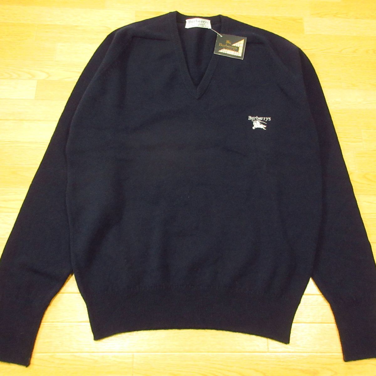 - ◎新品 90s!BURBERRYS バーバリー スコットランド製 Vネック ニット セーター ウール100 ヴィンテージ メンズ 紺色 42 (約XL)◆AA5196