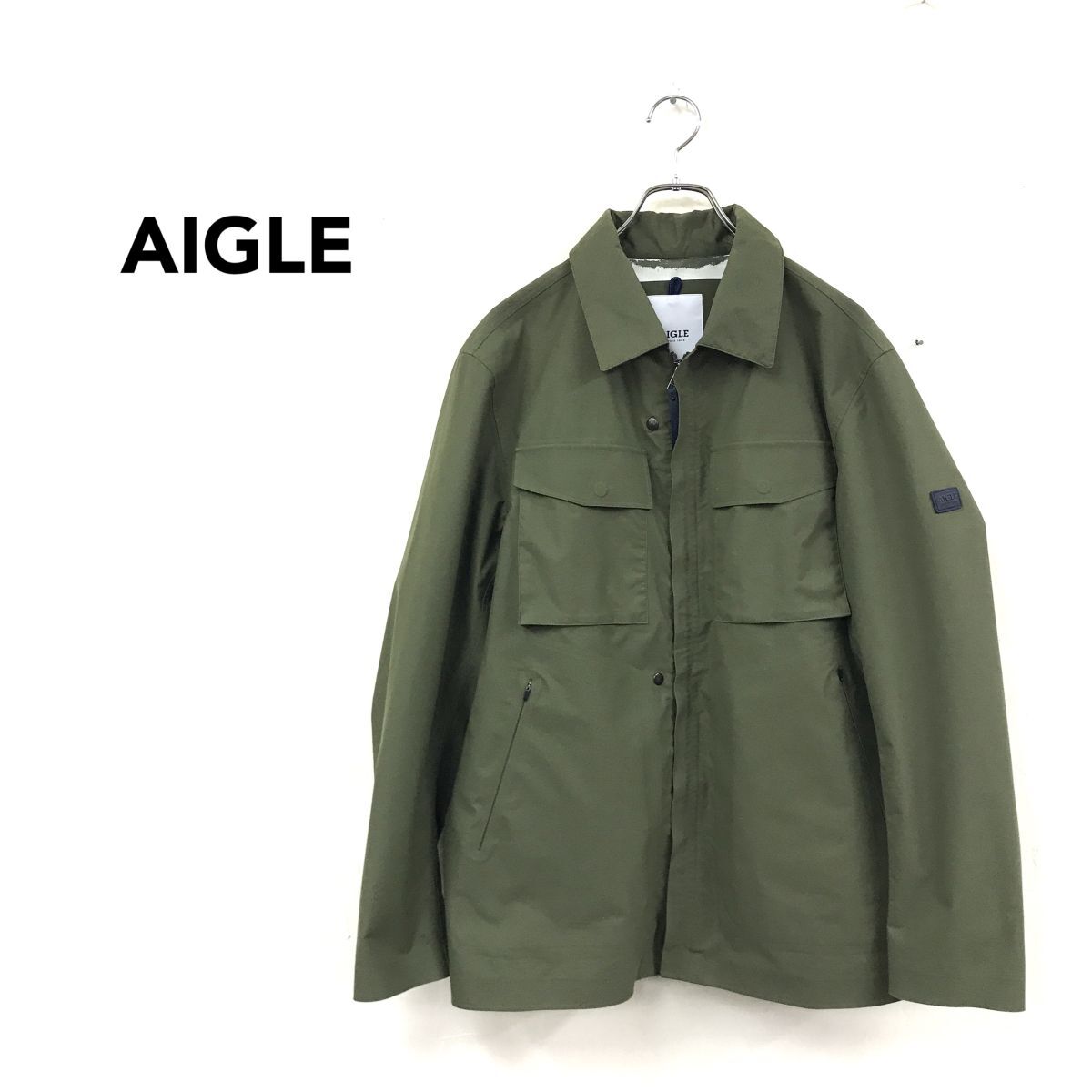 > 2N1323-G-N◆ AIGLE エーグル 浸透防水ワロンジャケット ダブルジップ フラップポケット コクーンスリーブ ◆ sizeL カーキ ナイロン
