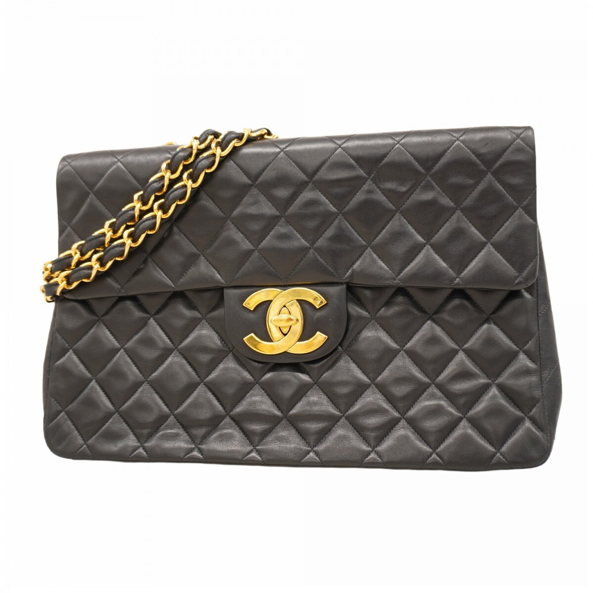 - 【5ob0516-h】シャネル ショルダーバッグ デカマトラッセ Wチェーン ラムスキン ブラック ゴールド金具【中古】レディース