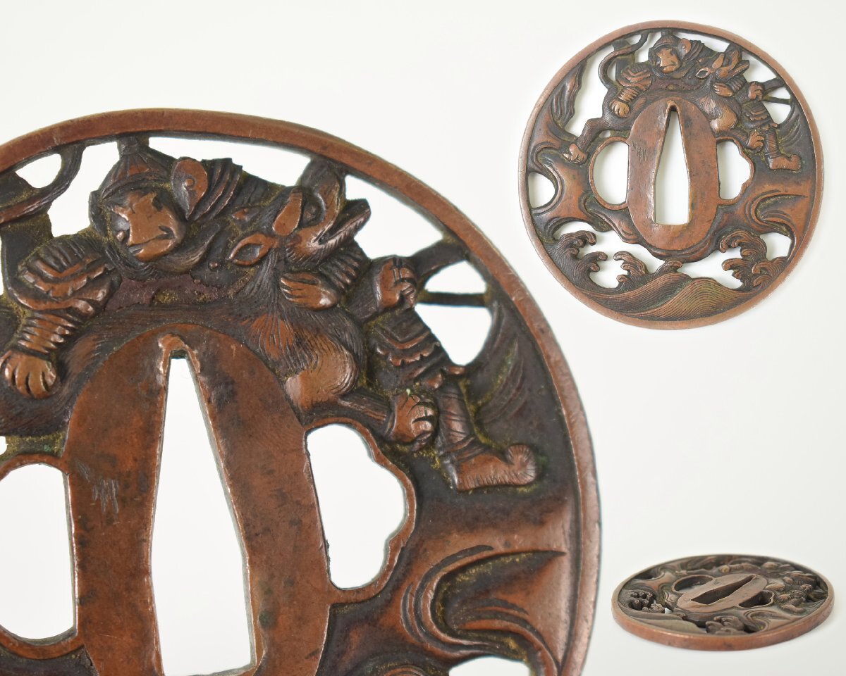 Z643 【泉美】透かし 鎧猿 犬 鍔 刀剣鍔 刀装具 武具