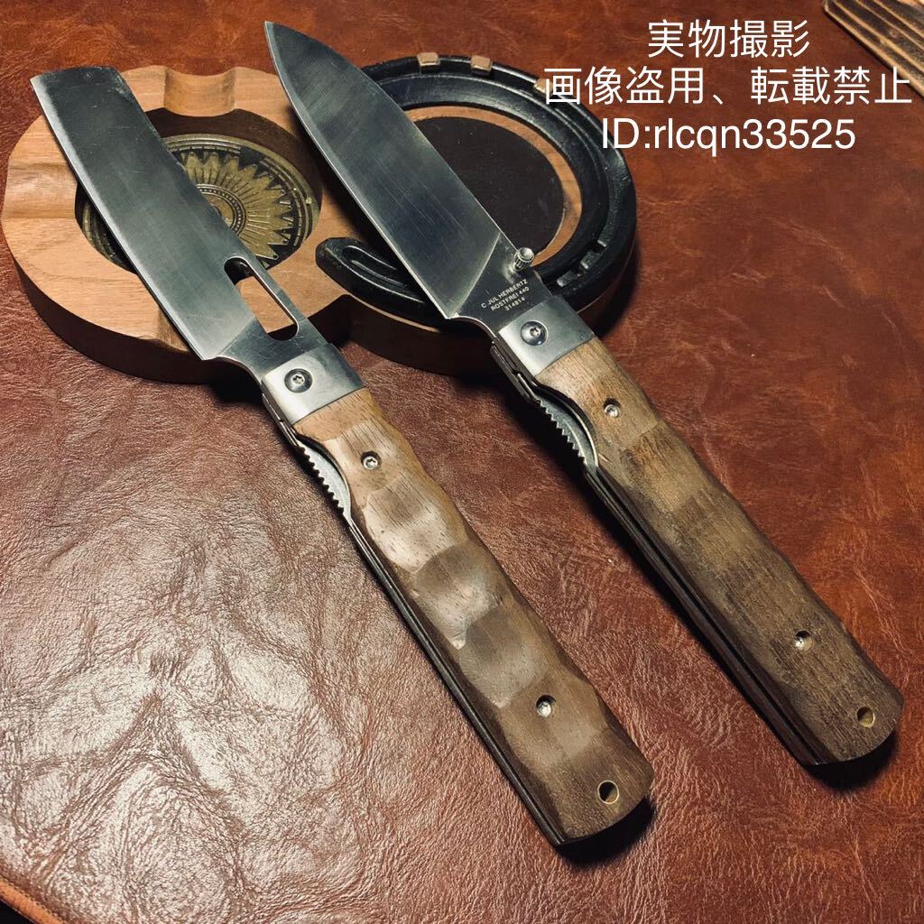 > 超激レア 名栗加工 アウトドア用 高品質 折りたたみ包丁 2本セット 長さ25cm 木柄 鋼刃 キャンプ アウトドア 釣り 野外登山