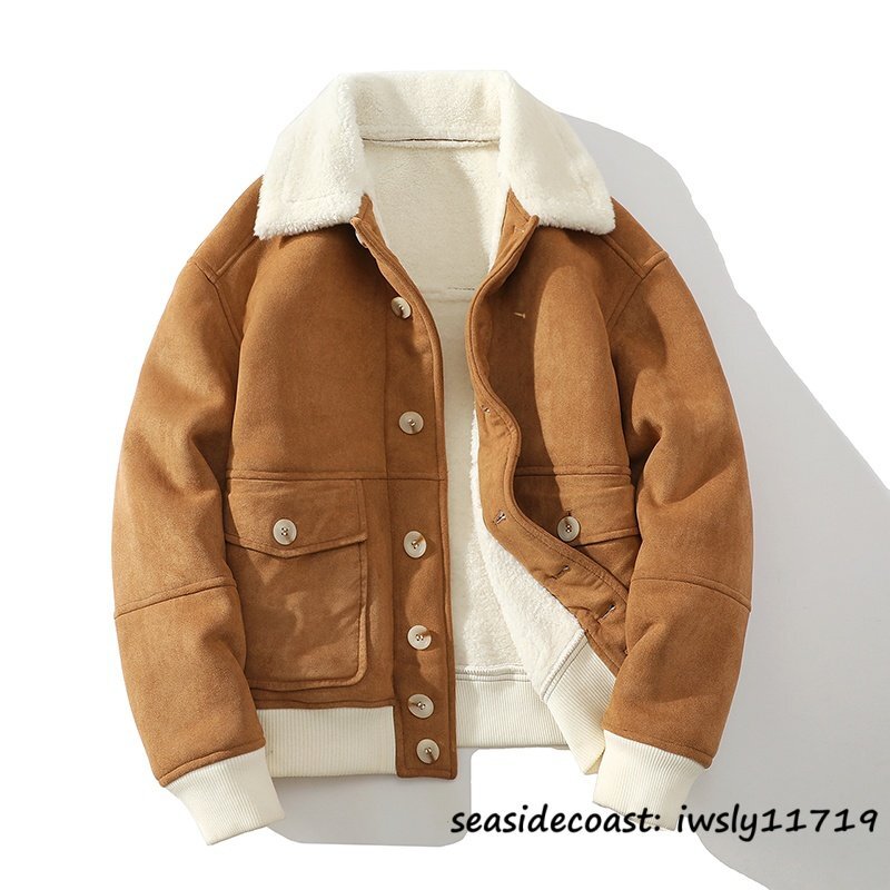 - 極美品●定価12万 新品 ムートンコート メンズ 裏ボア 暖かい 厚手 超防寒 秋冬 フライトジャケット ライダース ジャンバー オレンジ 3XL