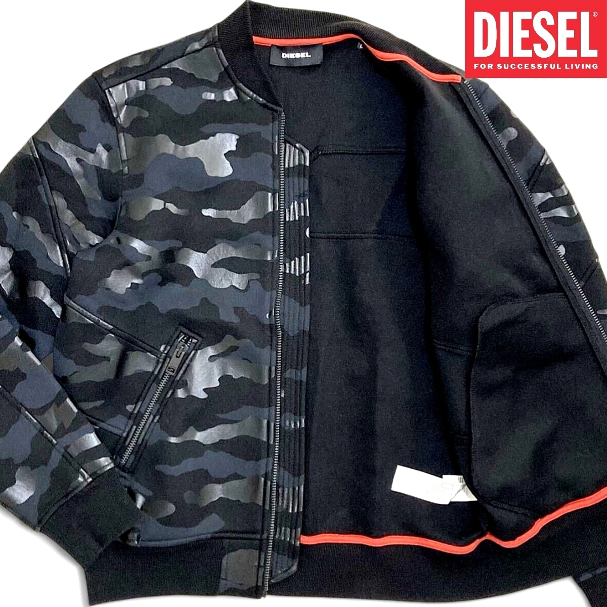 > 極美品●XL相当 ディーゼル メンズ ボンディング フライトジャケット MA-1 迷彩 DIESEL ブルゾン 総柄 ボンバージャケット カモフラ 黒 L