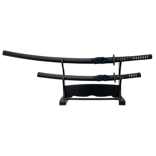 - 札17 模造刀 日本刀 刀掛け台付き 2本 大小 セット 武士 武具 刀剣 小道具 和風 アンティーク コレクション ジャンク