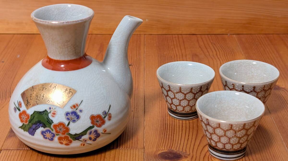 - 徳利(とっくり) 陶器 急須型 お猪口 3個付き