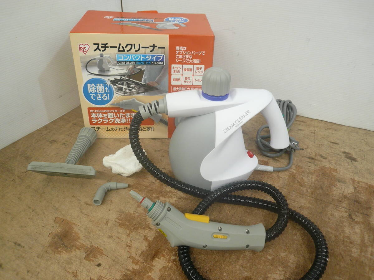 - ♪アイリスオーヤマ IRIS OHYAMA スチームクリーナー ハンディタイプ STM-304W スチーム確認 送料は説明欄※ジャンク品扱い ■80