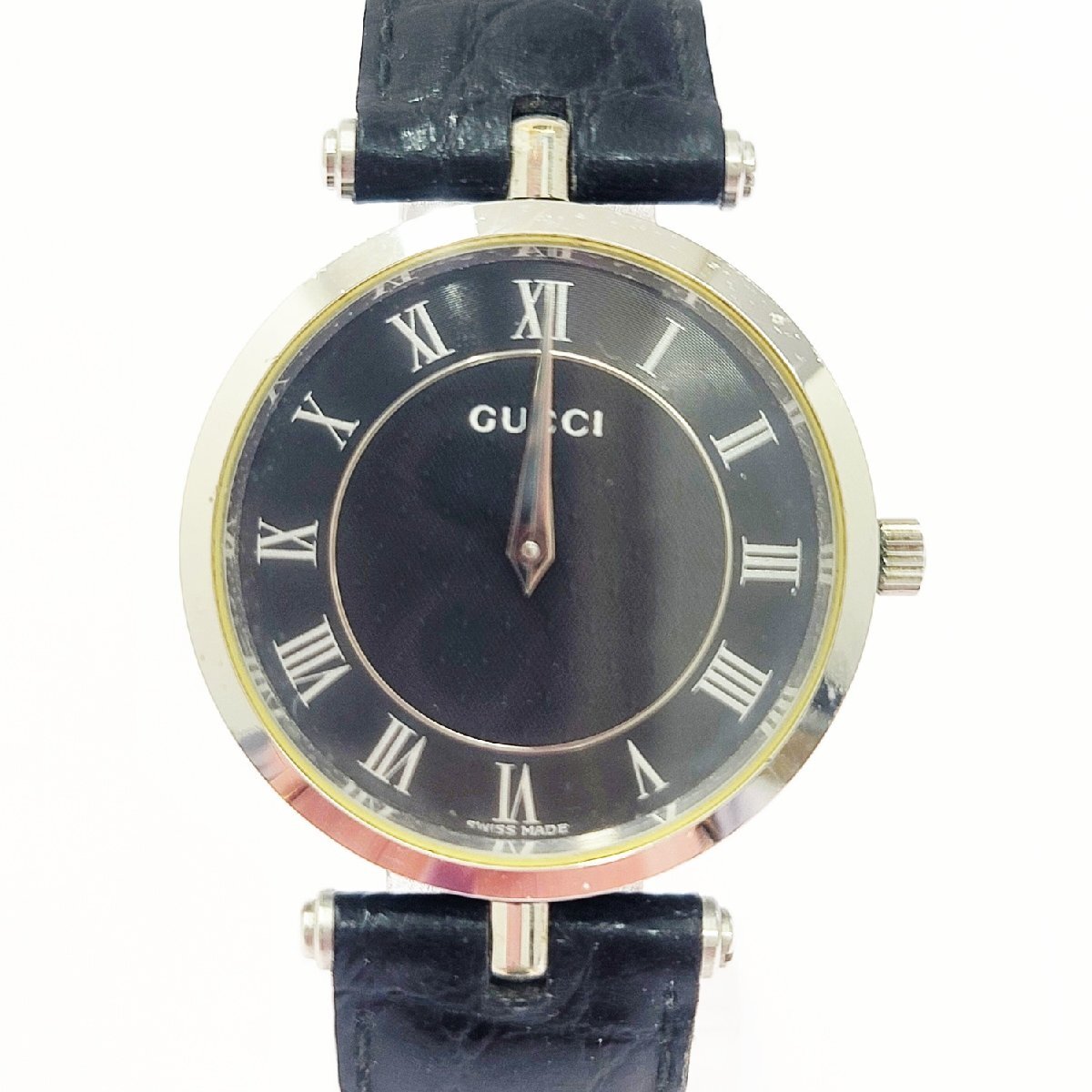> 【1円スタート】GUCCI グッチ 2040M シェリーライン SS ブラック文字盤 クオーツ ボーイズ腕時計 ジャンク 510904