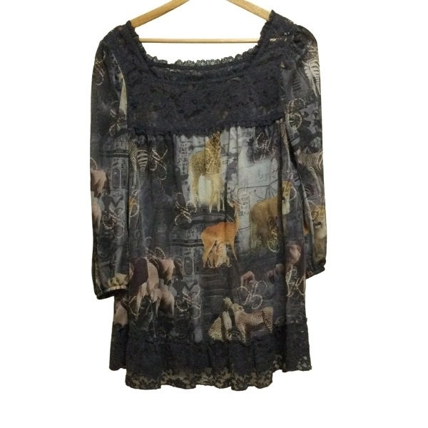> イタリヤ 伊太利屋/GKITALIYA チュニック サイズ9 M - ダークグレー×ライトブラウン×マルチ レディース 長袖/レース/アニマル柄
