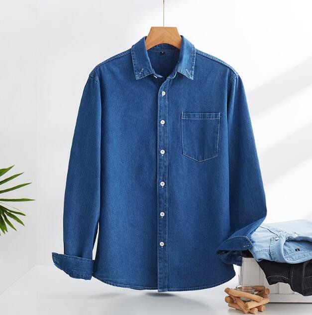 - 人気推薦デニムシャツ メンズ長袖シャツ 無地 綿生地 シンプル 紳士服 ワークシャツ トップス カジュアル ブルー3XL