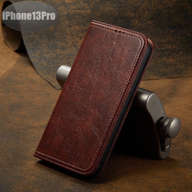 - iPhone13PRO ケース PUレザー おしゃれ スマホケース スマホカバー ブラウン 耐衝撃 衝撃吸収【n279】
