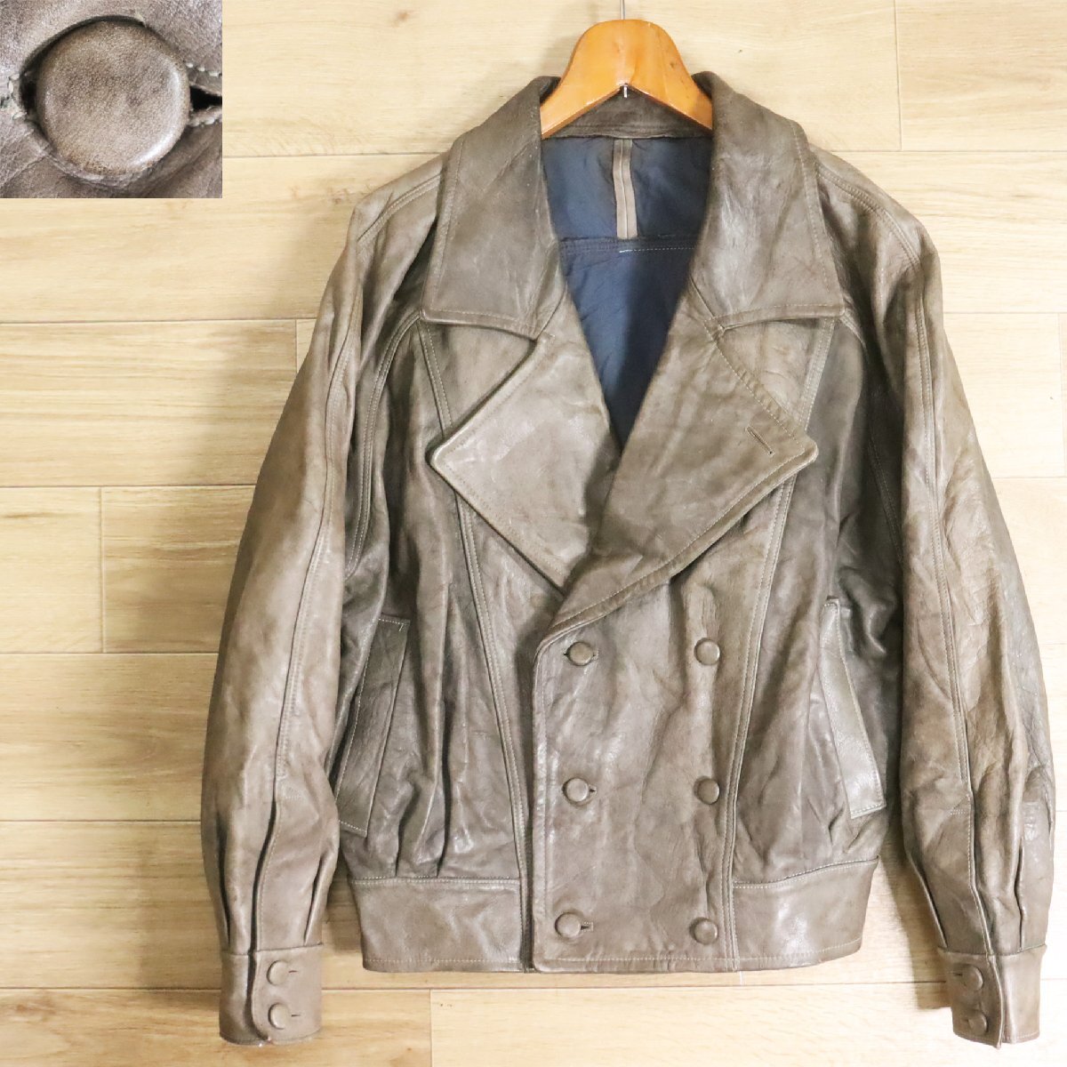 > B13R/Y6.12-2 ユーロ古着 ダブルブレスト モーターサイクルジャケット 本革 レザージャケット ライダース 革ジャン 皮ジャン