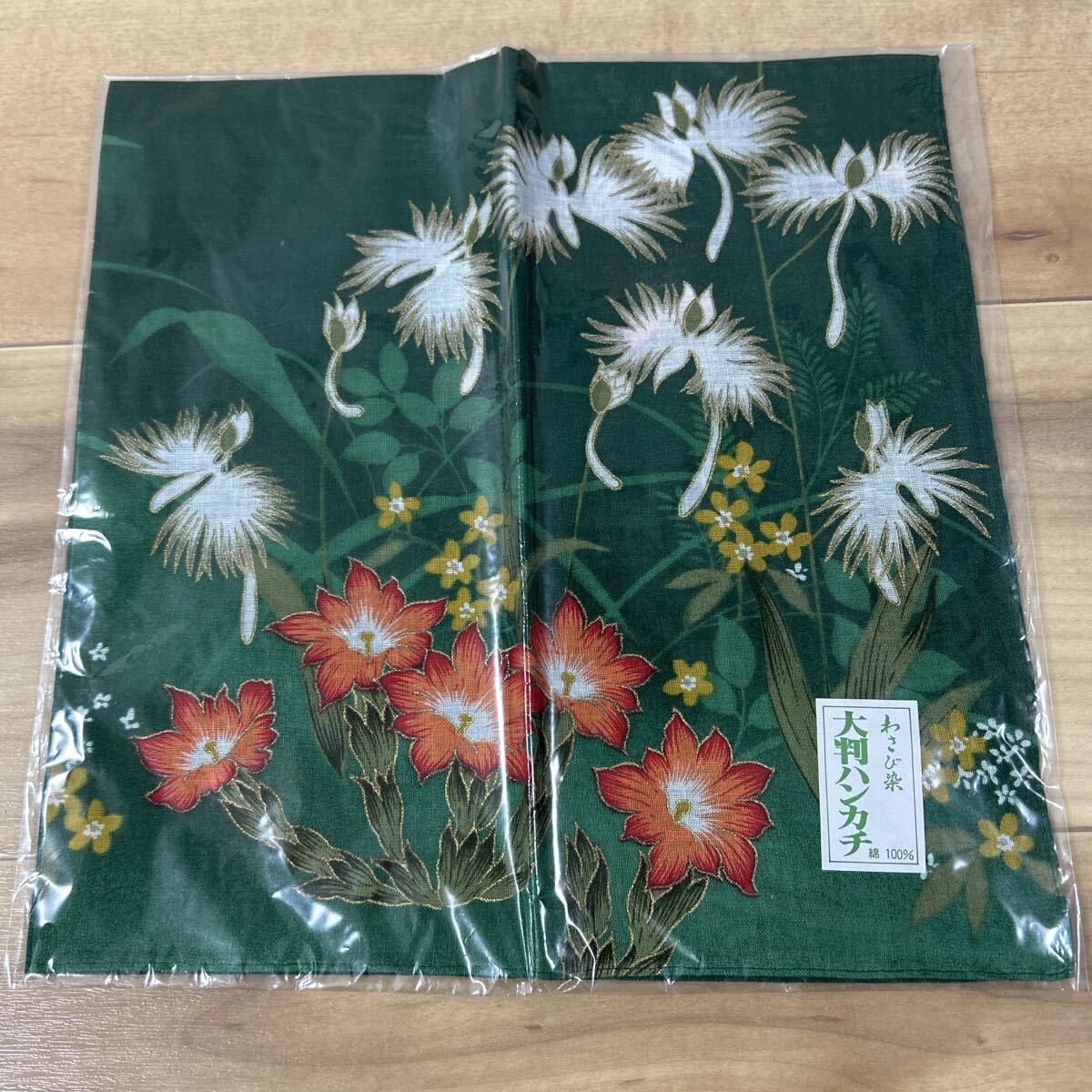 - 新品未開封 わさび染 大判ハンカチ グリーン