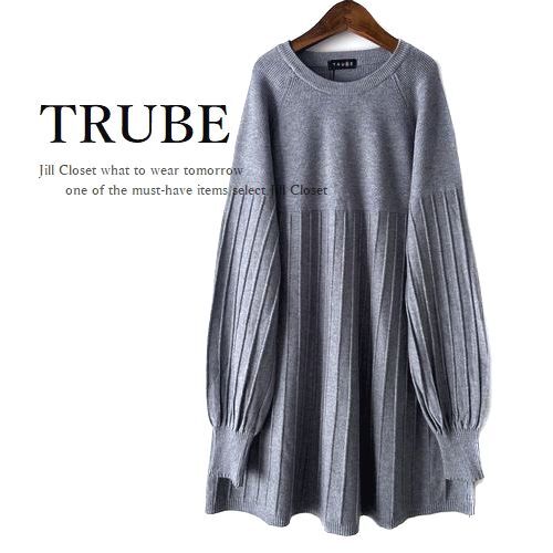 - 新品【送料185円】伸縮◎リブ&ジャガードデザイン*大人可愛いぽわん袖♪ハイゲージニット*プルオーバー*チュニック7752.GRAY